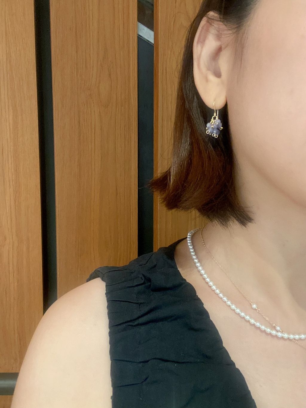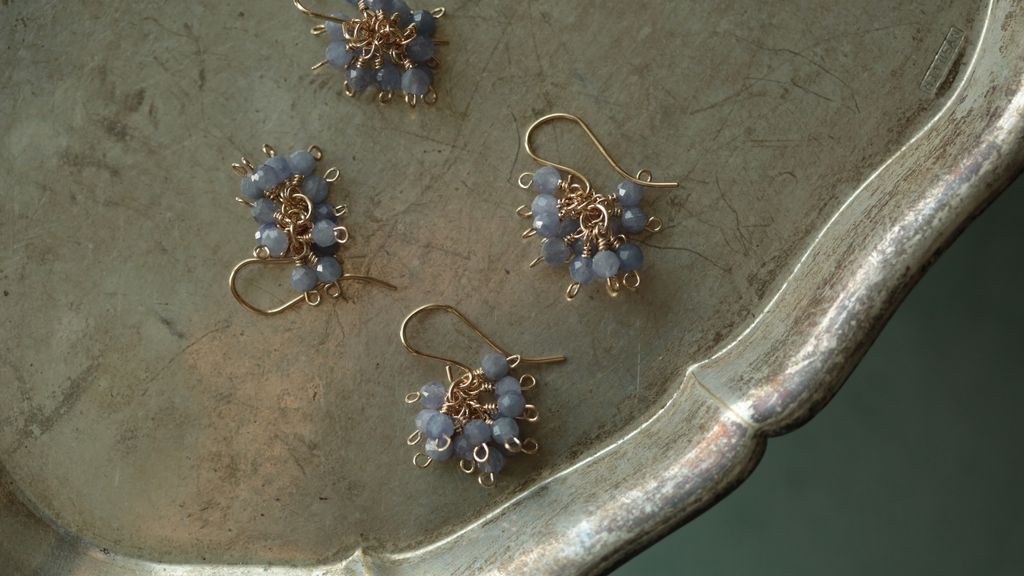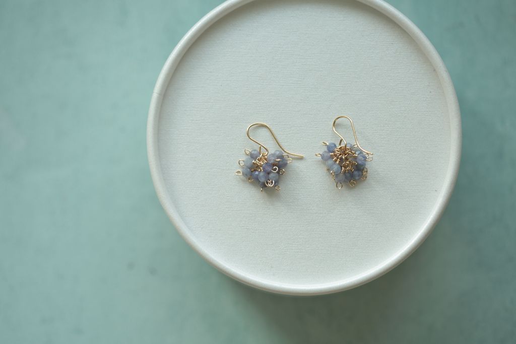 小顆圓切坦桑石組成的花團,閃耀藍紫光澤,像耳畔盛開的繡球花。