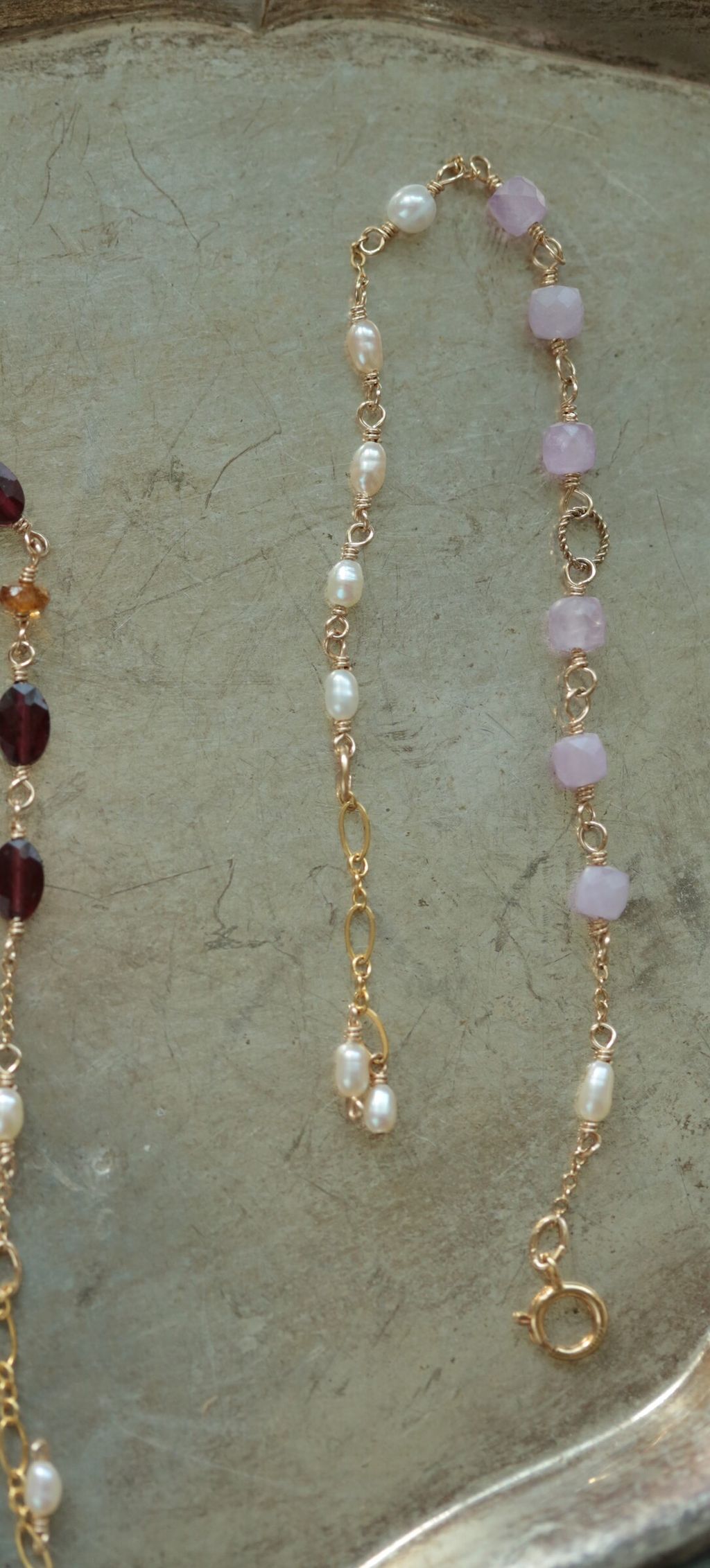 淡紫色的方塊紫鋰輝搭配小米粒珍珠,輕巧又有氣質。