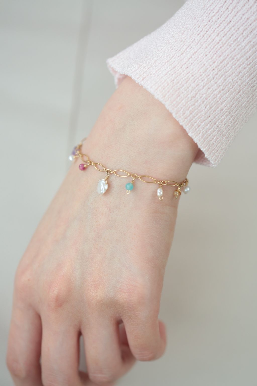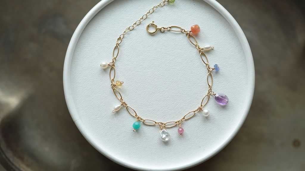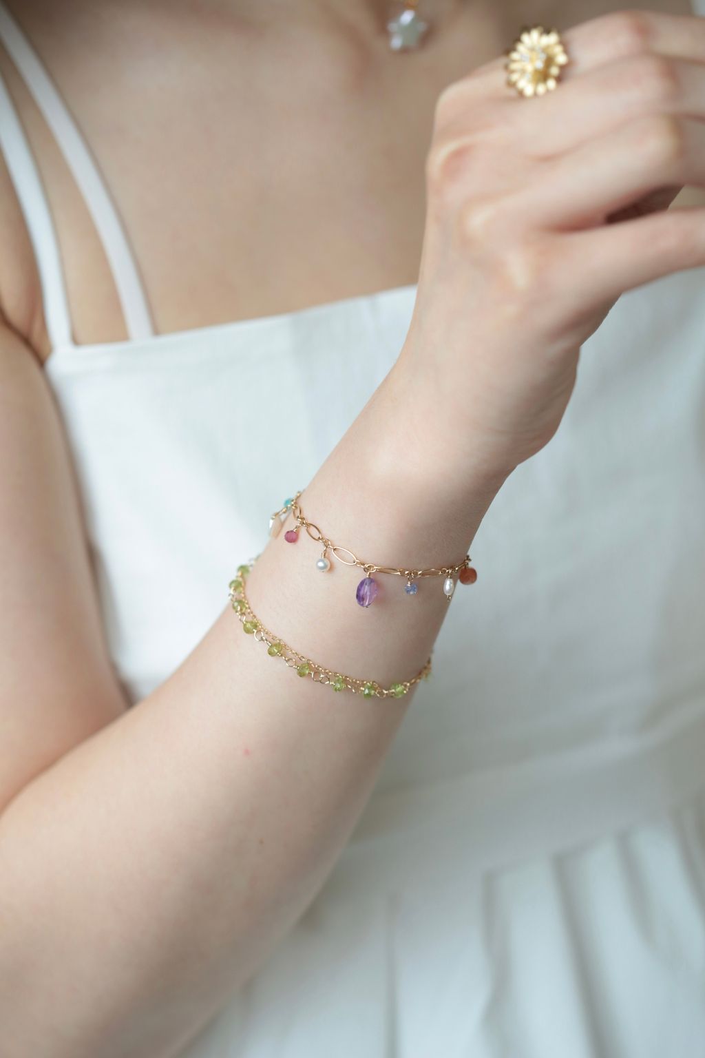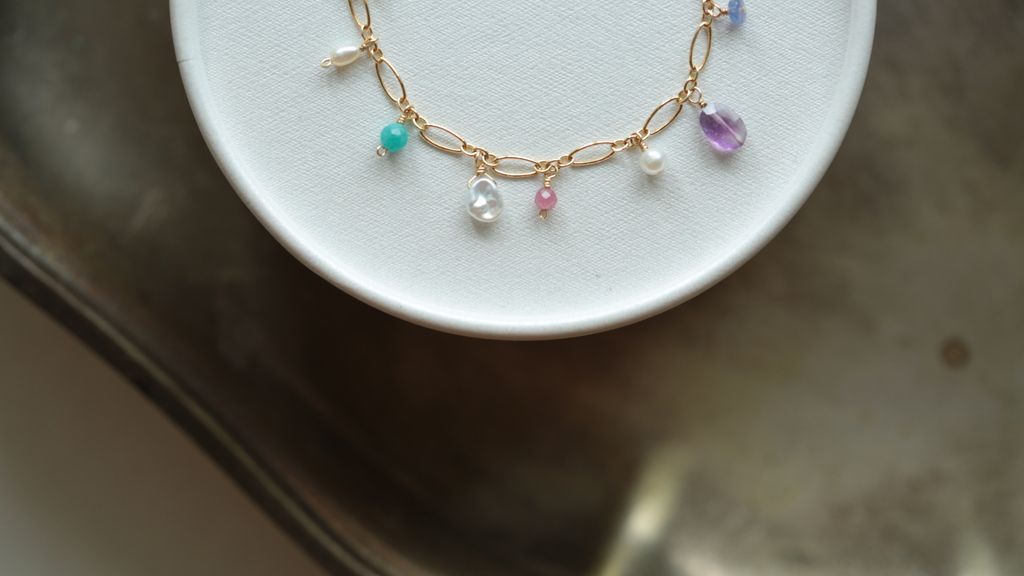 天然石與珍珠像晨露般晶瑩剔透,象徵春天的清新感,